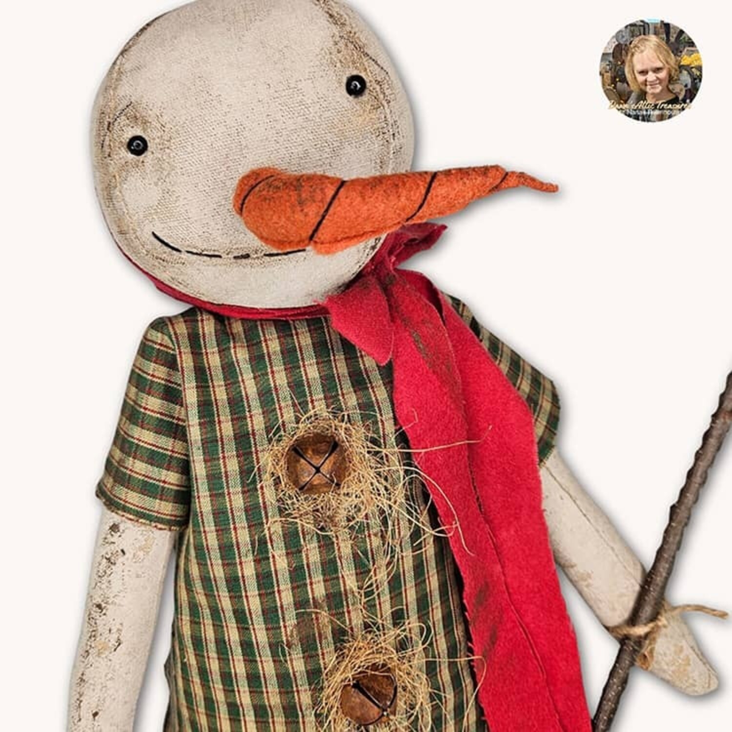 Primitive Doll for the Christmas season. Stands on wooden base. Handmade in the USA.