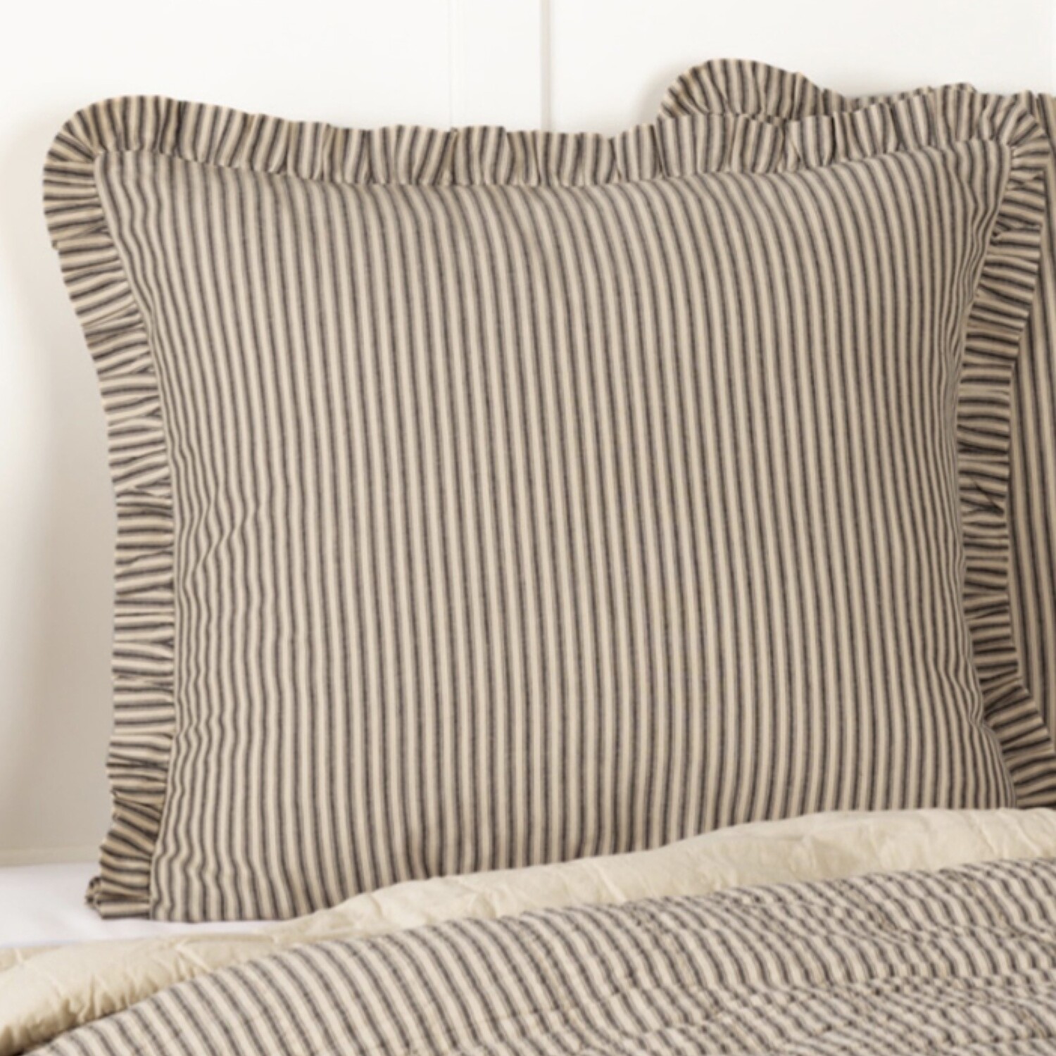Features of the Sawyer Mill Charcoal Ticking Stripe Fabric Euro Sham: