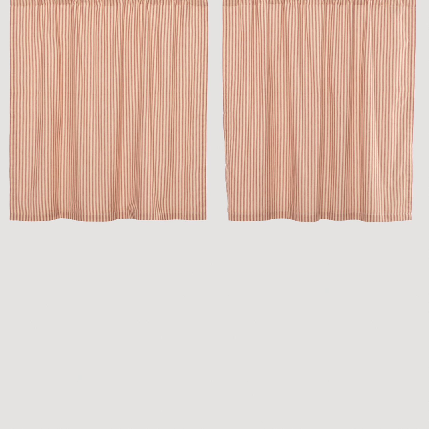 Availability: In Stock$45.95Add the simple, clean, look of the Sawyer Mill Red Ticking Stripe Prairie Panel Set to your country home. The timeless ticking stripe fabric makes a bold window treatment that features textured cotton fabric in country red and dark tan ticking stripes.