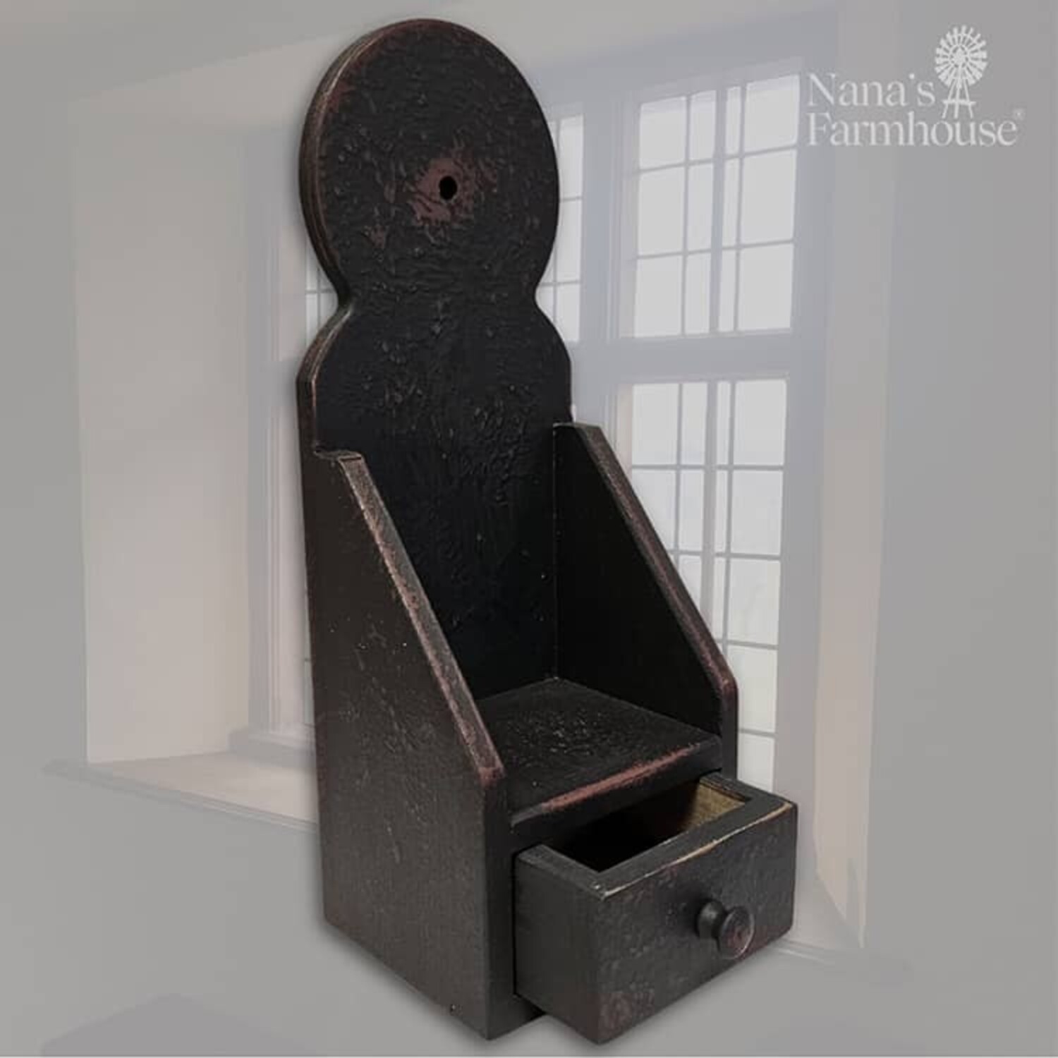 The Round Top wooden Sconce is handmade in the USA. Features a drawer for storage and a hold to hang if needed.