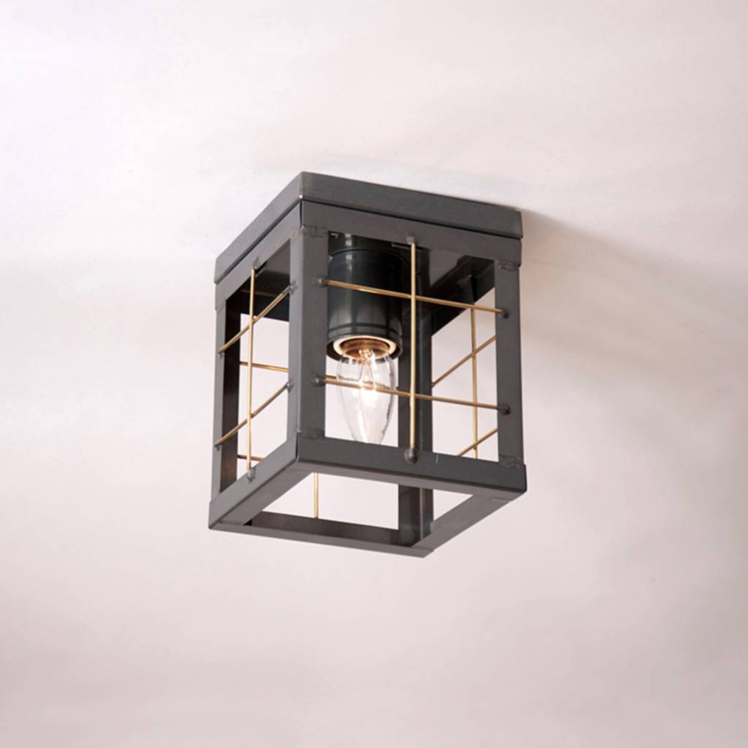 Country Tin Ceiling Light with Brass Bars features: