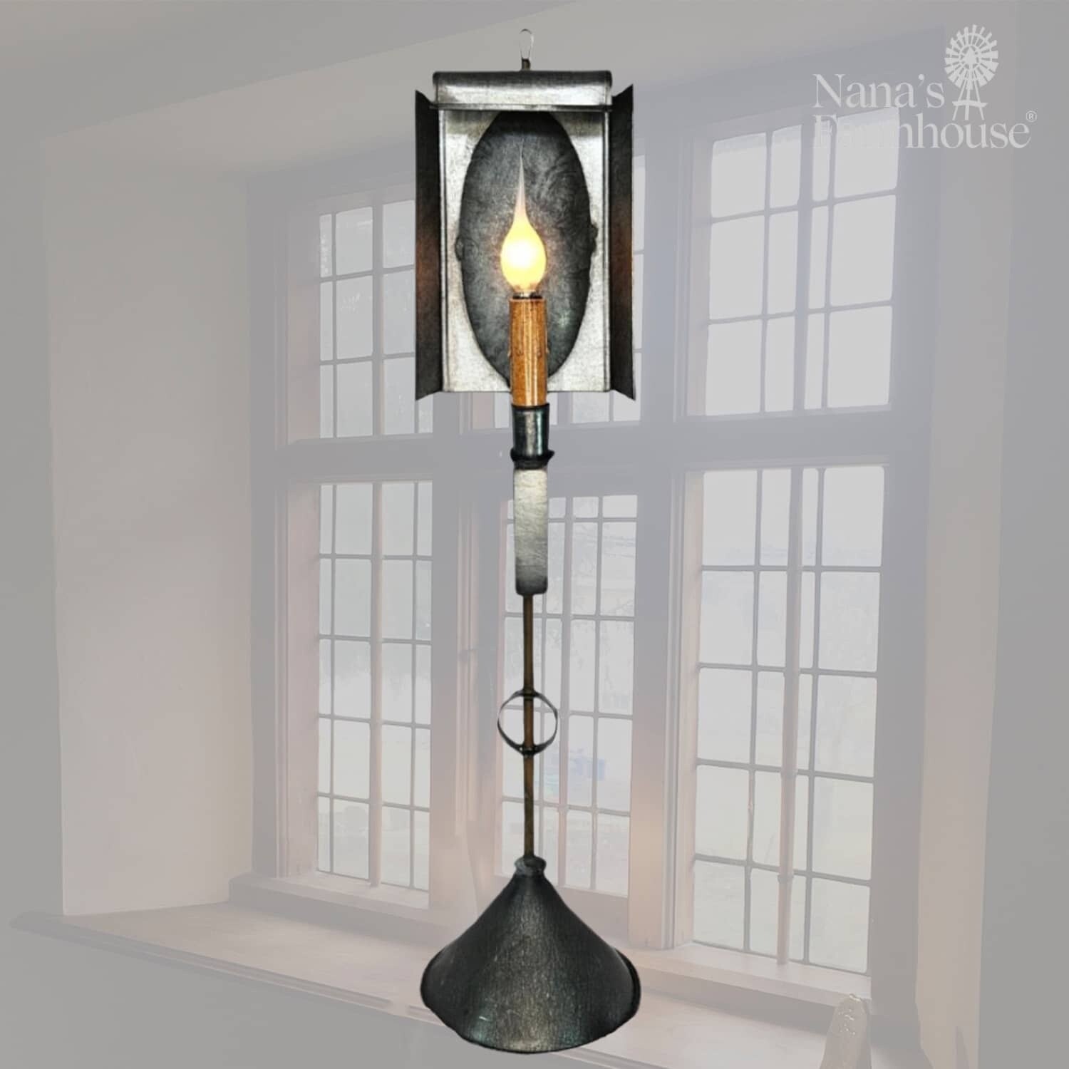 Availability: In Stock$129.99Simple, Primitive, Elegance can be found in the Single Mini Table Lamp. On a side table or a favorite shelf this light brings a warm glow to any space. Beautiful Colonial detail. Made using strict guidelines of historic lighting. Made in the USA.