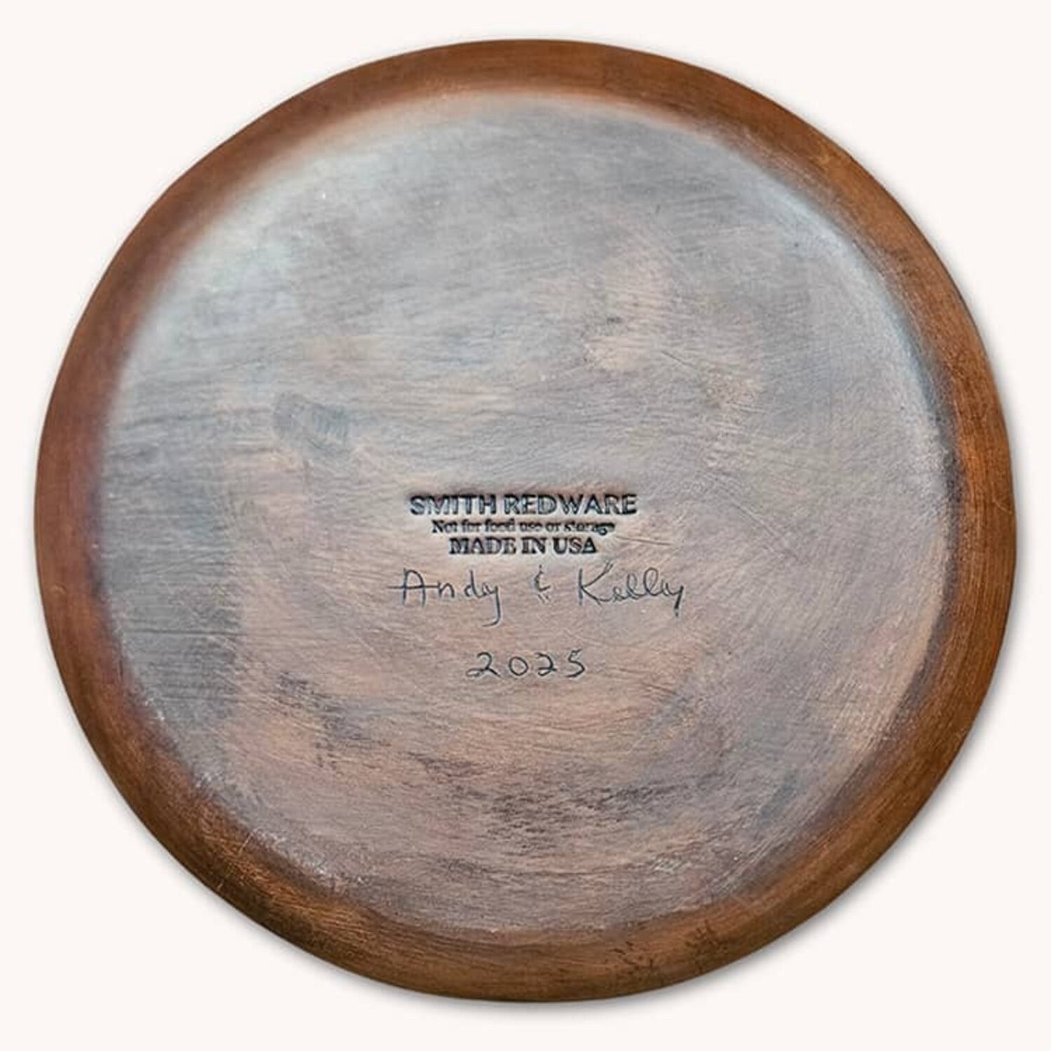 Availability: In Stock$47.99This charming plate features a scalloped edge with a yellow and black vase and green vines and flowers. This handmade piece adds warmth to any hutch, shelf or tabletop. Original design from Smith Redware pottery. In stock and ready to ship.