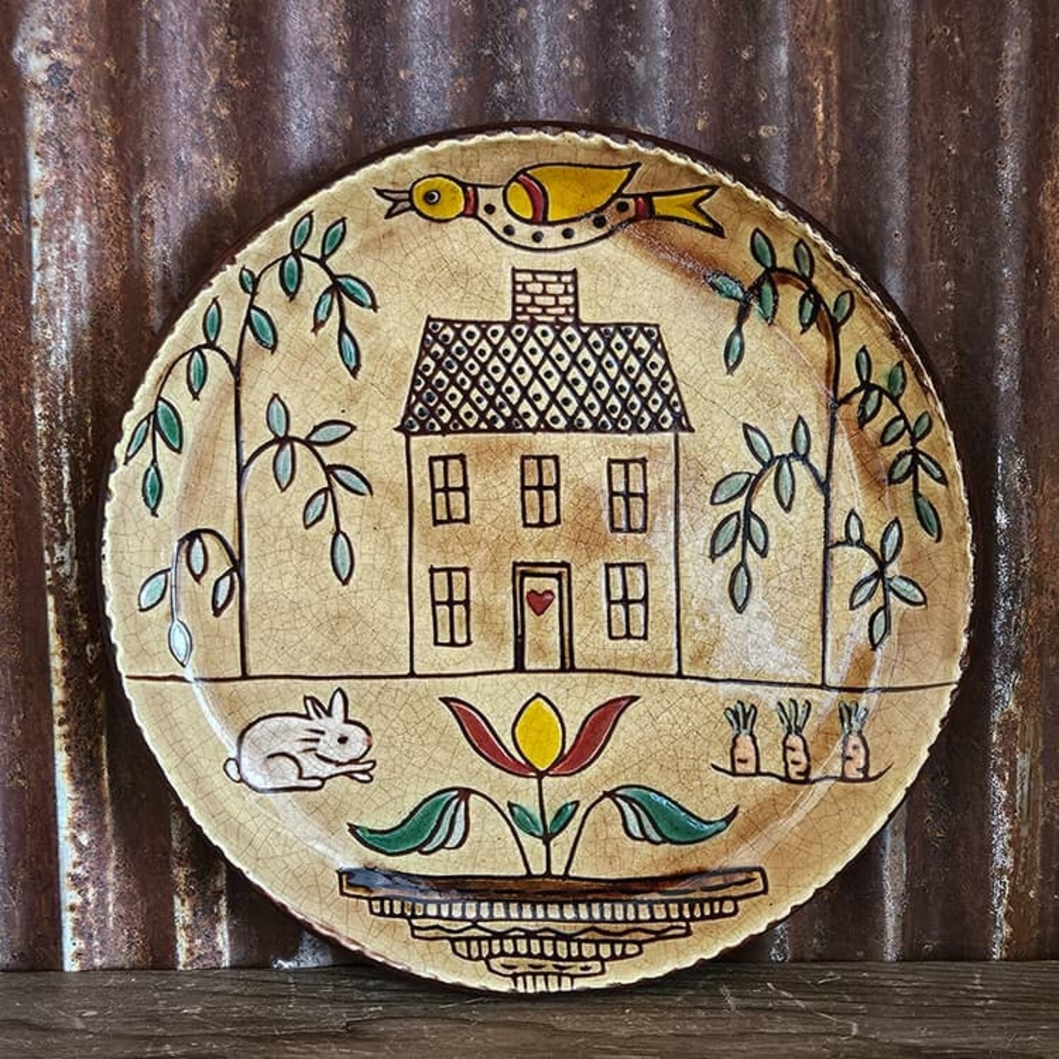 Smith Redware House with Bird Trees & Bunny Round Plate - 9"