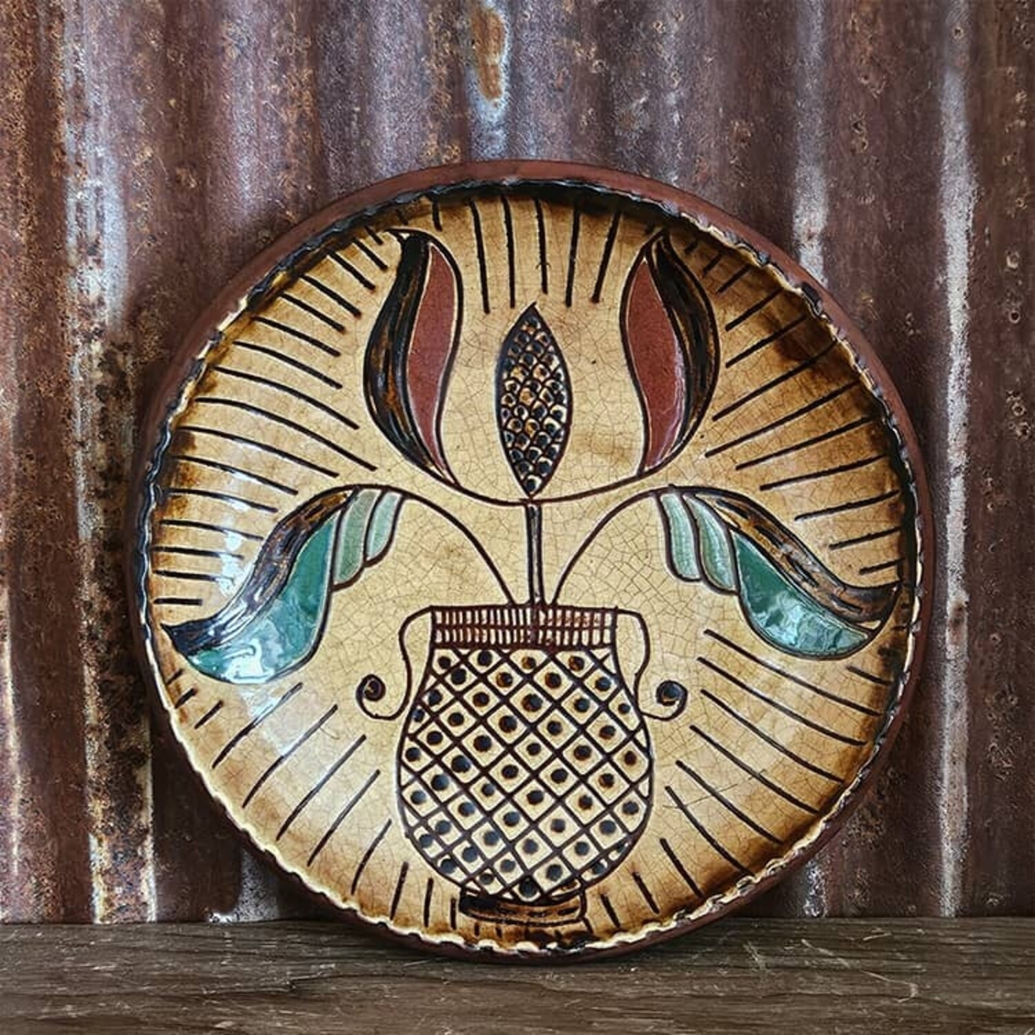 Smith Redware Vase with Flowers Round Plate - 6.5"