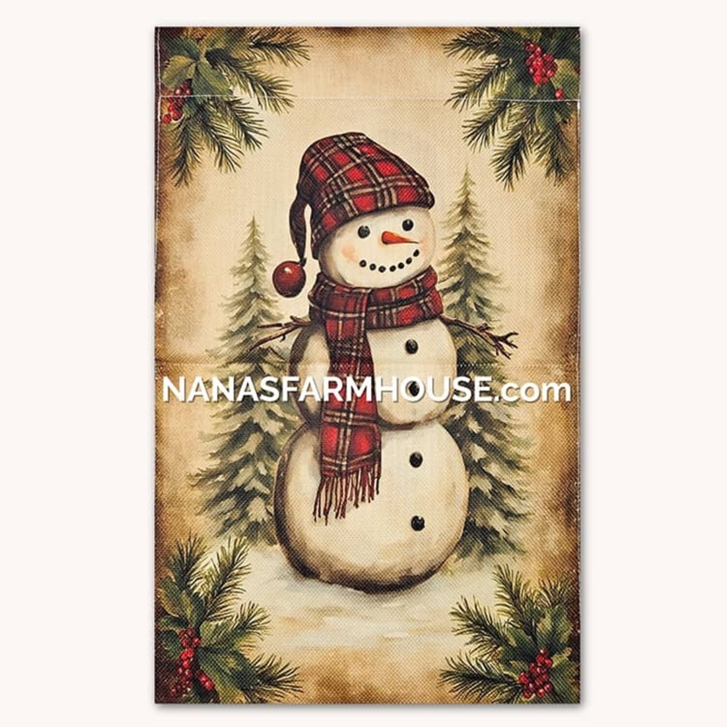 HomeBeddingAll BeddingPatriot Knot Black Cranberry Tan CollectionBed CoverSnowman In Pines Garden Flag - 17.25" x 12.5"