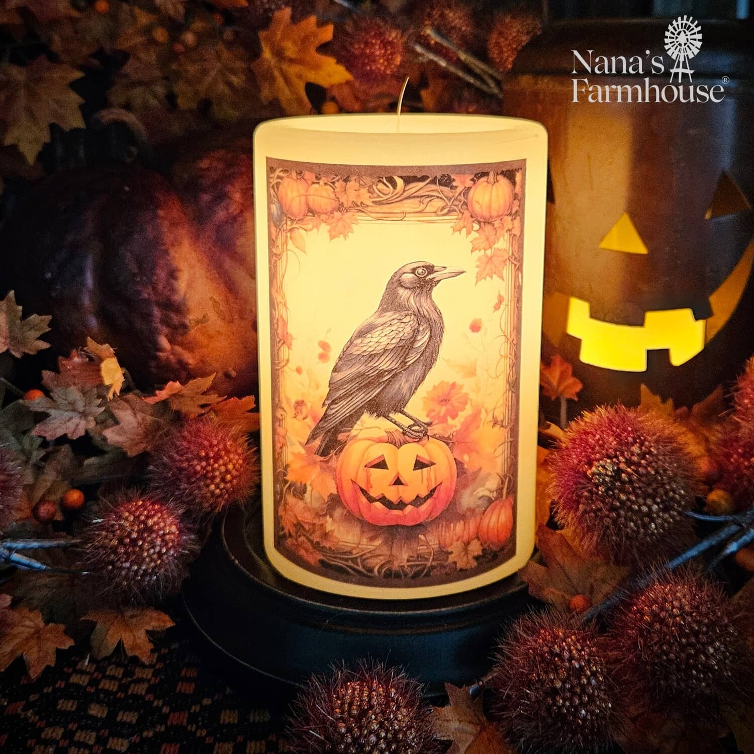 Spooky Fall Halloween Crow Candle Sleeve - Vanilla
