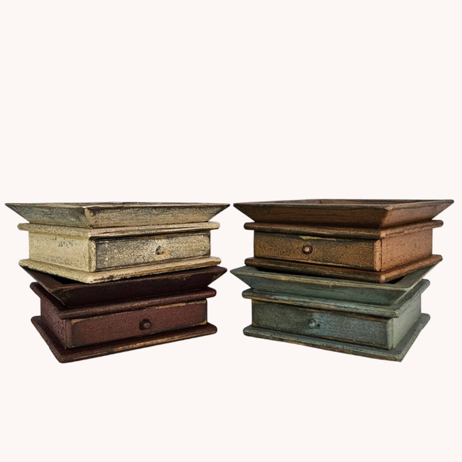 Availability: In Stock$44.99Distressed with a Rustic finish the Square Candle Tray makes a beautiful and functional addition to your country home. Open space on top can be used for your candle and greenery or used on an island for your keys. Made in USA of solid wood.Three Drawer Distressed Wall Box