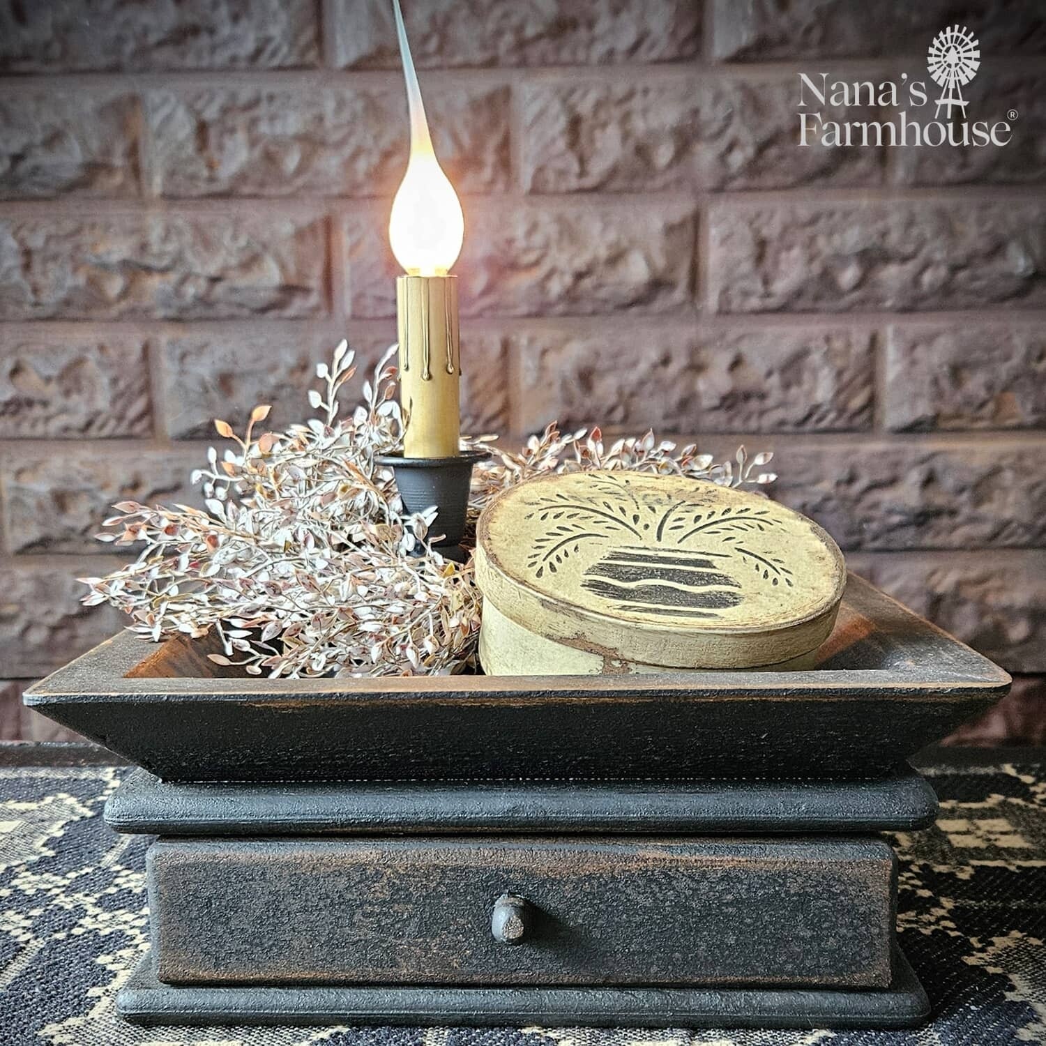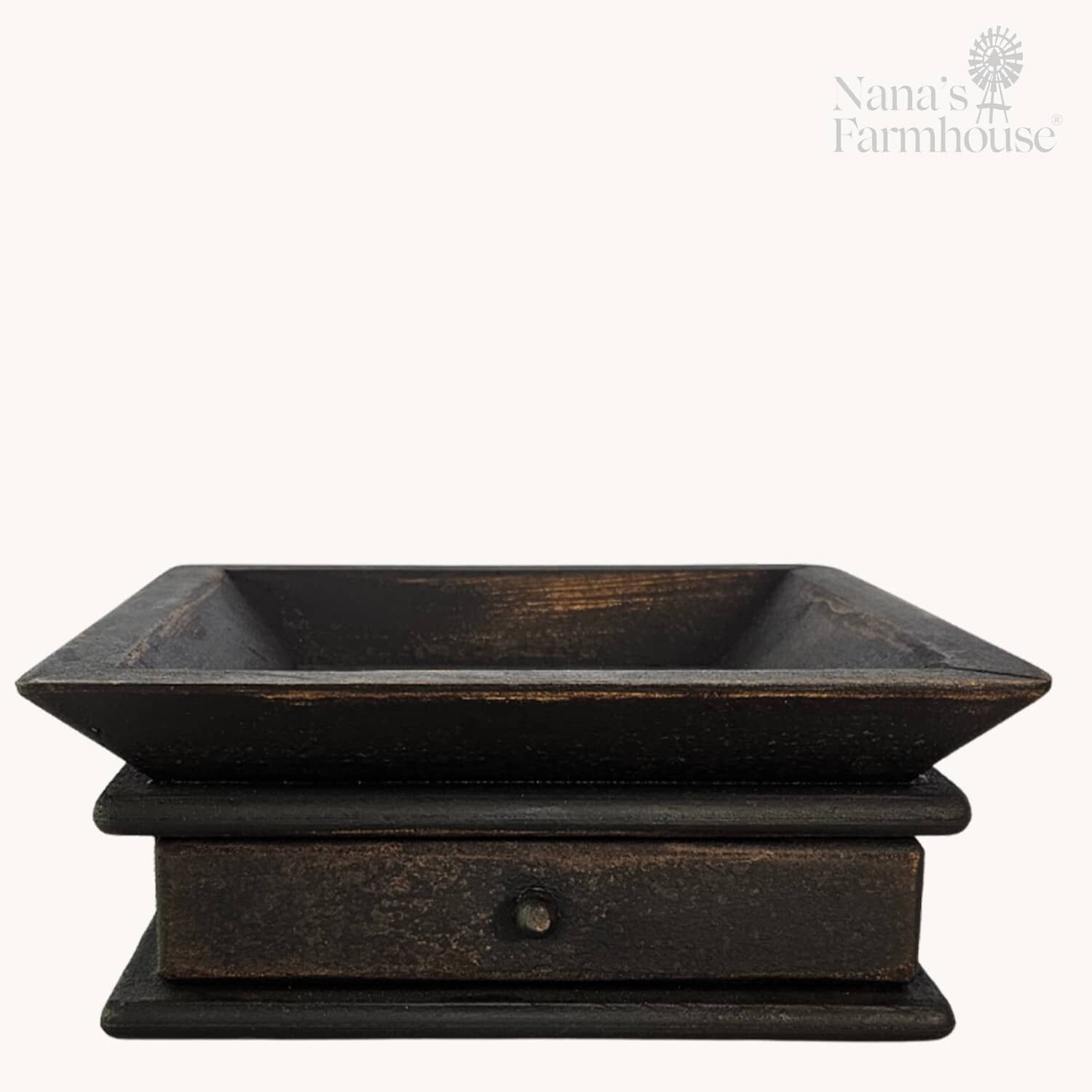The Primitive Square Wooden Candle Tray makes a great display for your candle or candle sleeve. The drawer is a useful space for small items. Beautiful on a shelf, kitchen island or surface. Handmade in the USA. Made of solid wood.