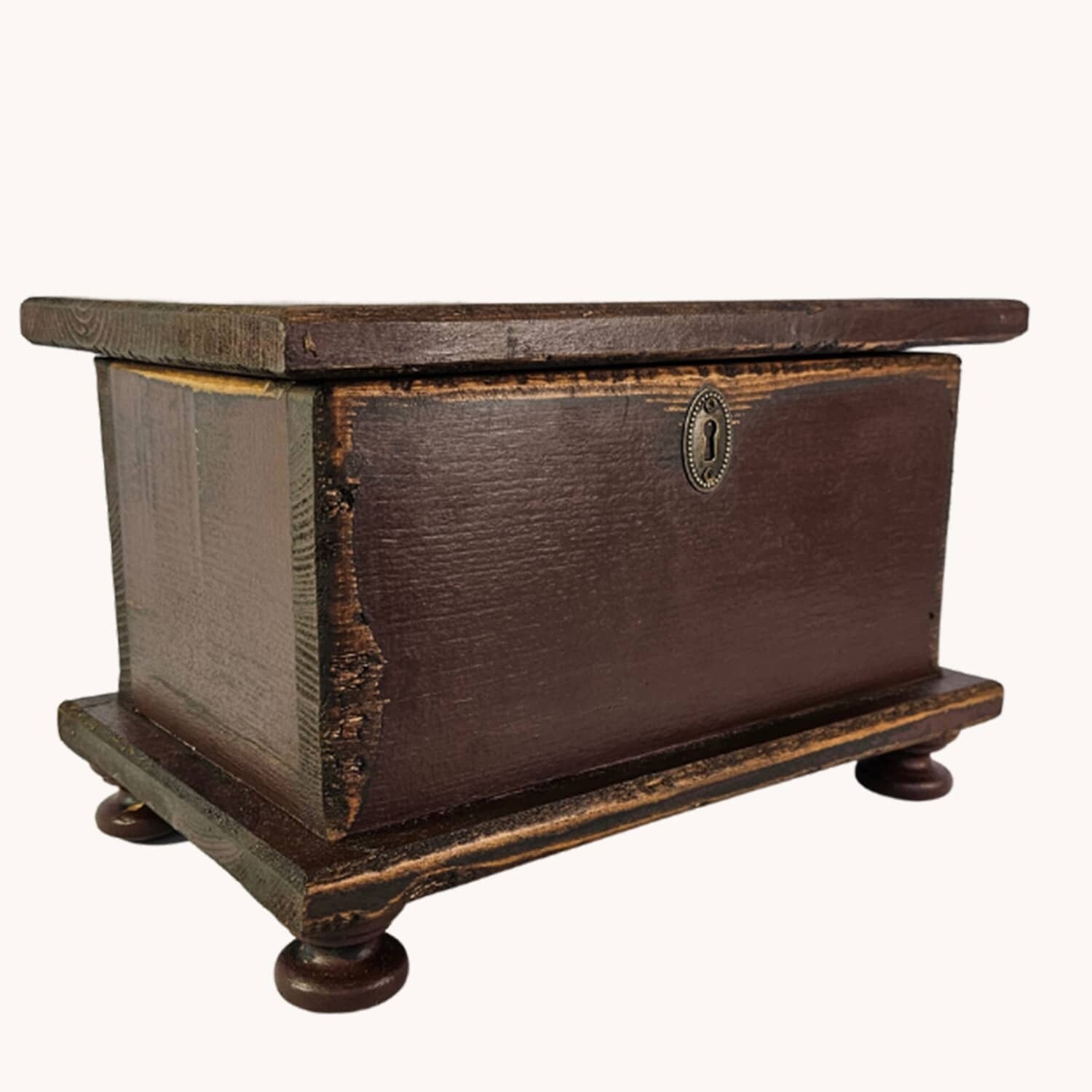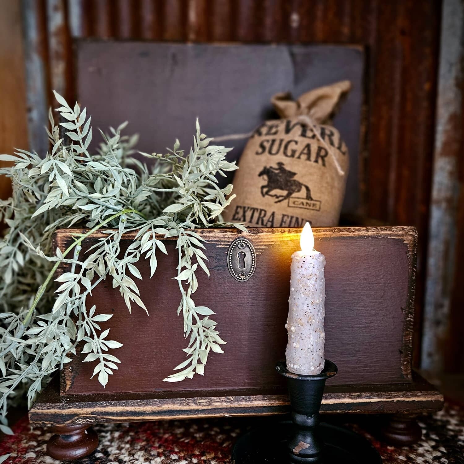 This Primitive Sugar Box is a great display piece but also can be used for storage. Handpainted in Cottage Red with a distressed finish. Made of solid wood.