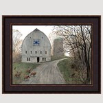 The Road Home Print is a simple view of what may be a daily scene. Yet the beauty is in the simplicity of an old red barn, a 100 year old tree in the distance or a broken fence row. It all leads home. Sold in a Black & Walnut frame, 16" x 12".