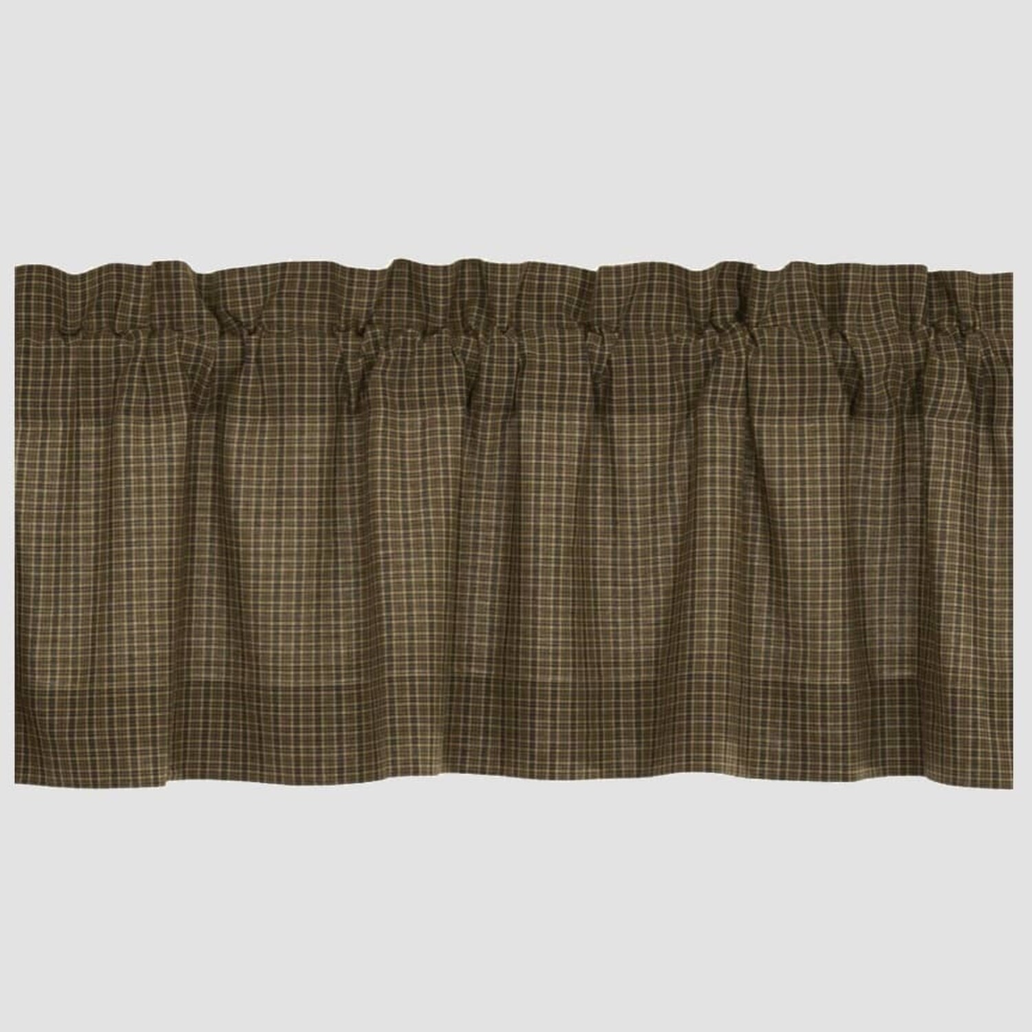 Add the finishing touch of the Tea Cabin Green Plaid Valance to your rustic theme. This valance features a plaid in medium & deep olive green tones, highlighted with creme. Perfect for a lodge or cabin look!