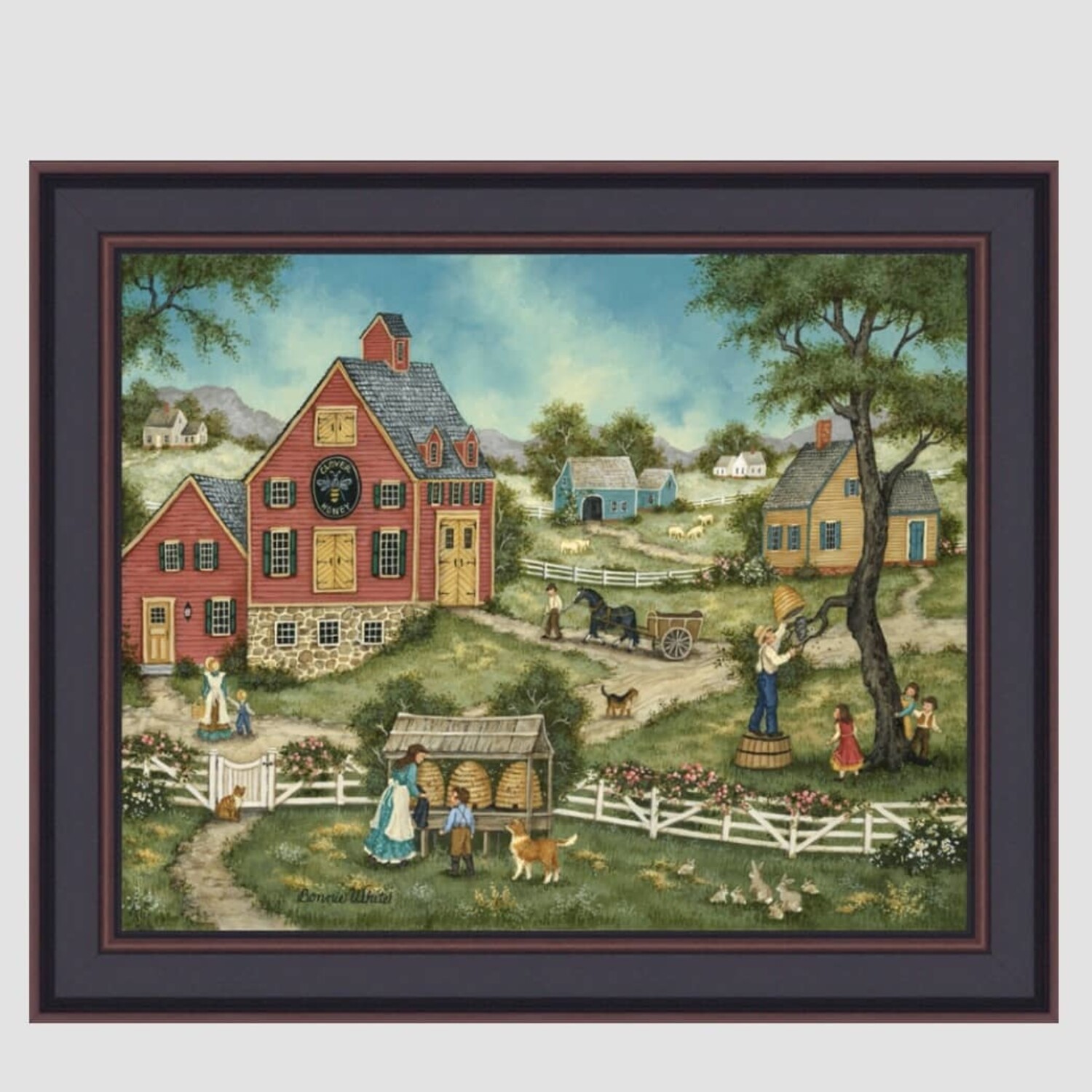 Availability: In Stock$119.99Fresh Baked Pies are the best with Macintosh, Granny Smith apples and mini-pumpkins! Primitive artist Bonnie White captures it all with her watercolors. You already love the cooler temps and nights of the Harvest season, now you'll love this too!Bartlett's Apple Orchard Print by Bonnie White