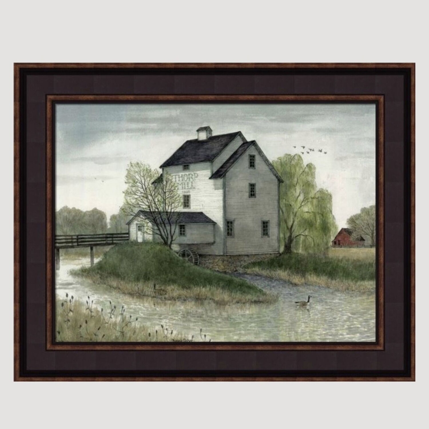 Sure to be a favorite, Bonnie Fisher has captured the nostalgia of the past with the Thorp Mill print. 16 x 12, lightly distressed frame, black with stained edges, no glass. Ships from supplier in 2 to 3 weeks in the continental U.S.