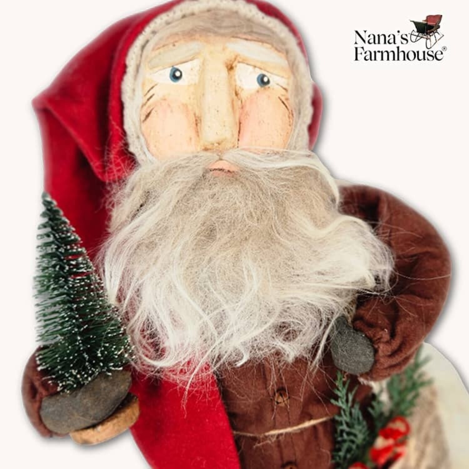 Tiny Santa Brown Coat with Christmas Tree & Candy Canes - 16"