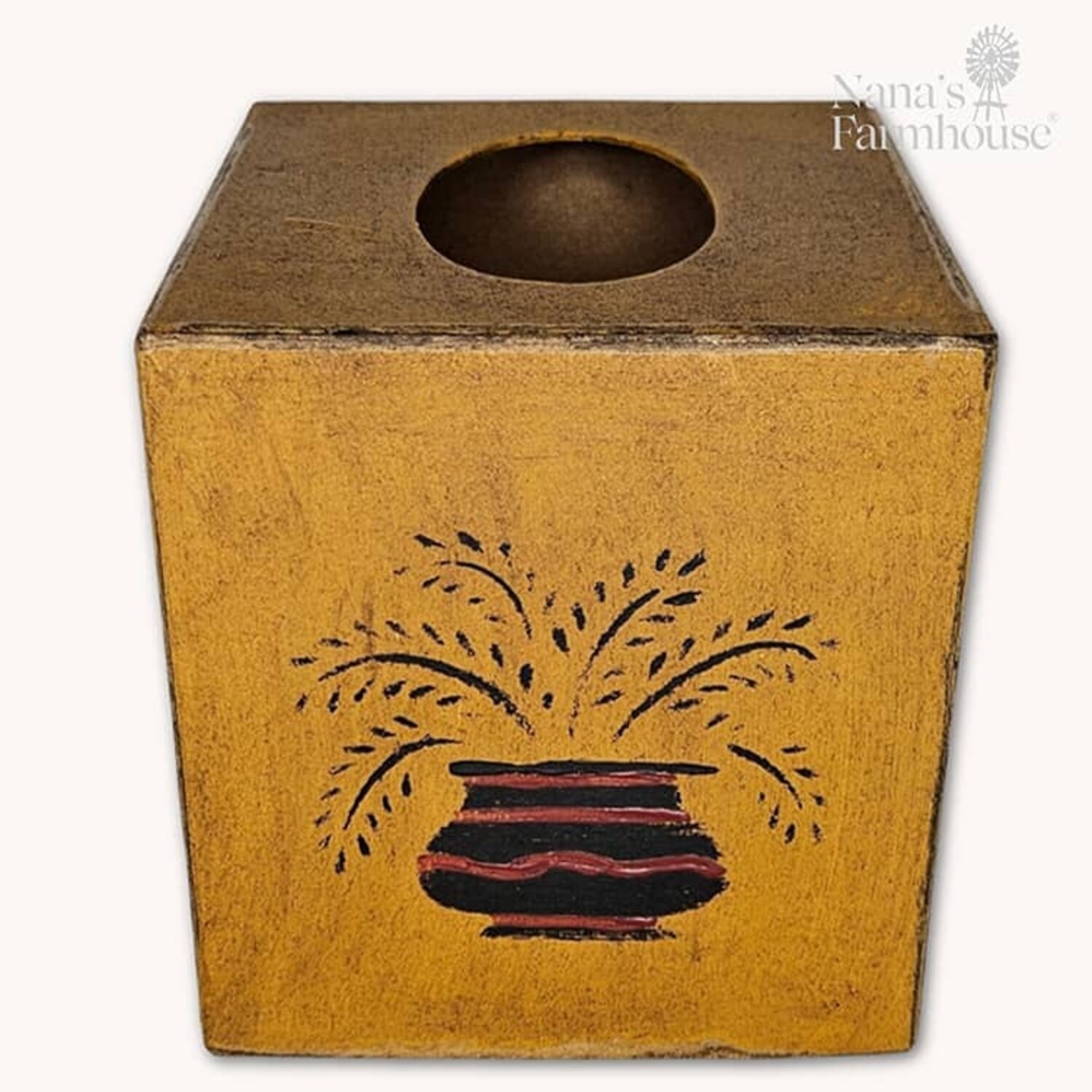 This handcrafted Tissue Box is accented with with Primitive and Country stenciling. Perfect touch for a living room, bath or bedroom.