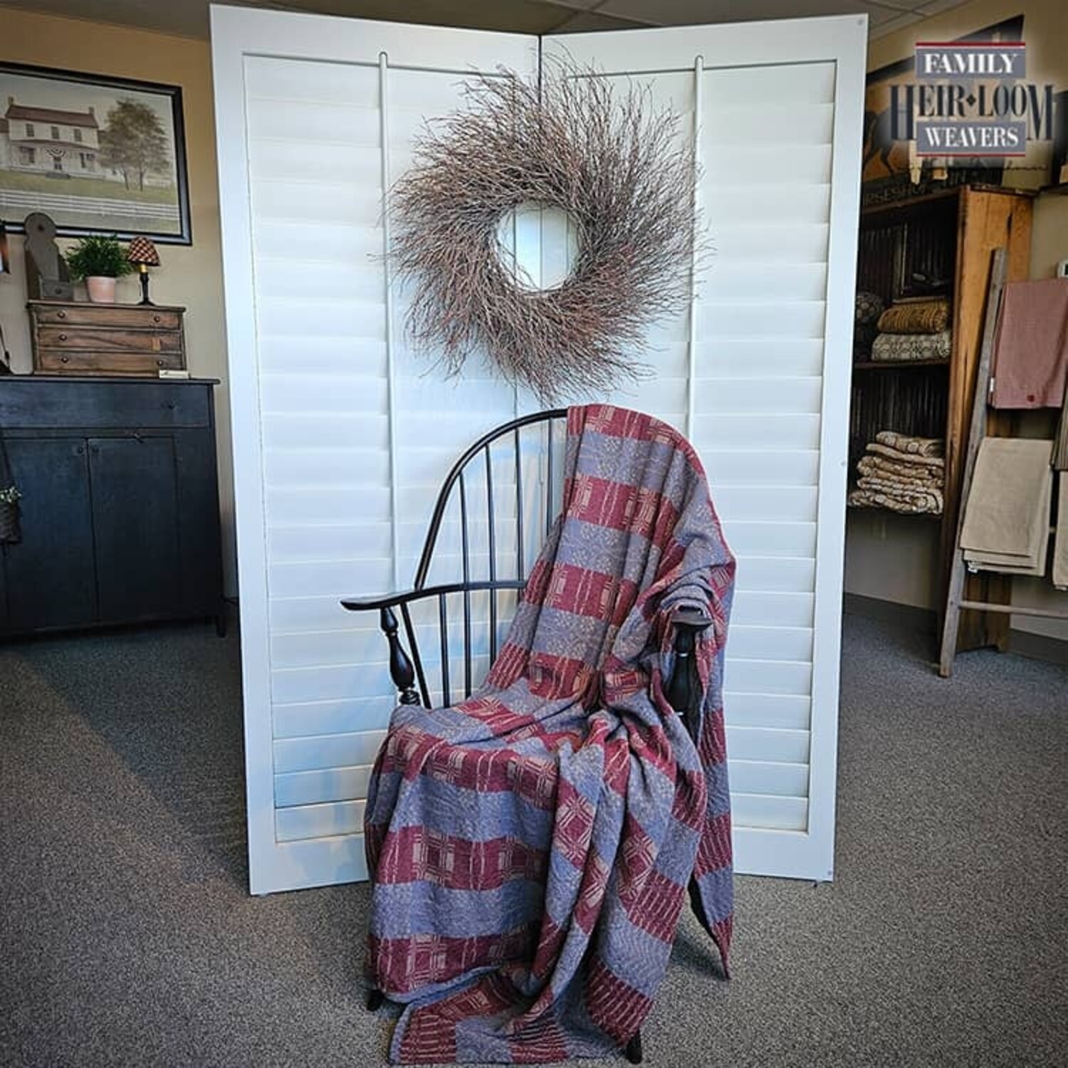 Created on a vintage loom. This Early American style Twill Blanket Throw will become a family heirloom passed down from generation to generation. Rich thread colors that also give you a soft coverlet to snuggle in.