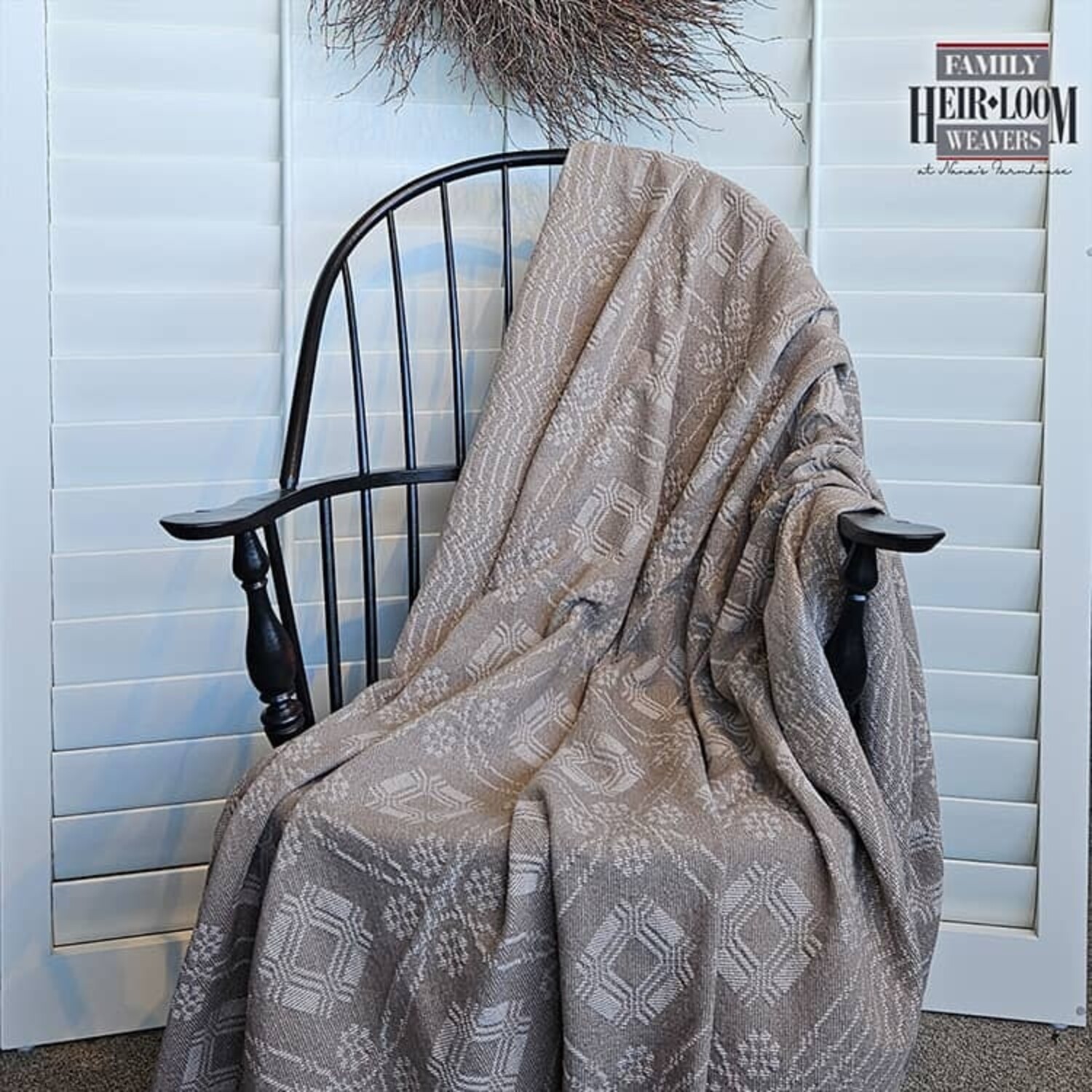 Created on a vintage loom. This Early American style Twill Blanket Throw will become a family heirloom passed down from generation to generation. Rich thread colors that also give you a soft coverlet to snuggle in.