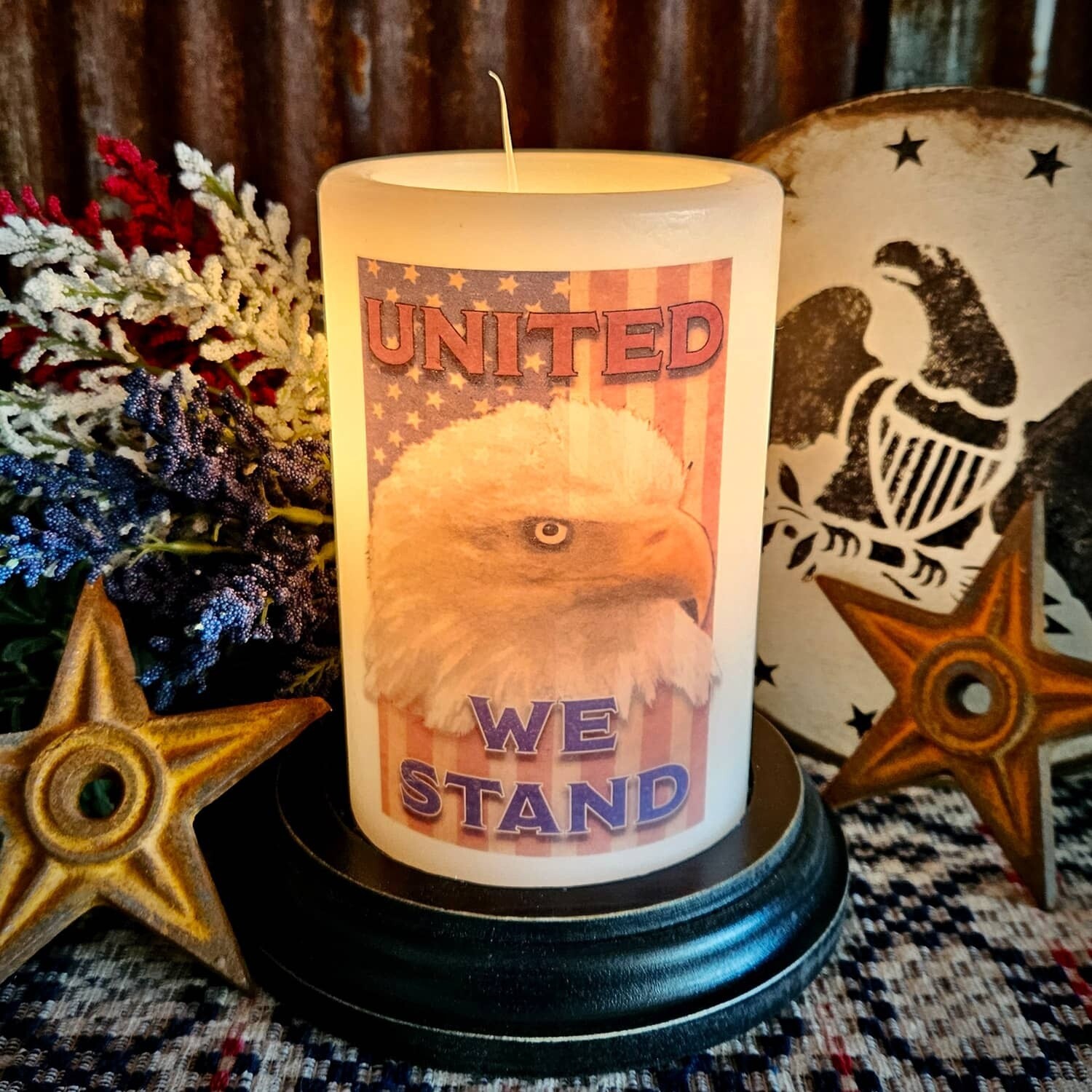 United We Stand Eagle Candle Sleeve - Vanilla details: