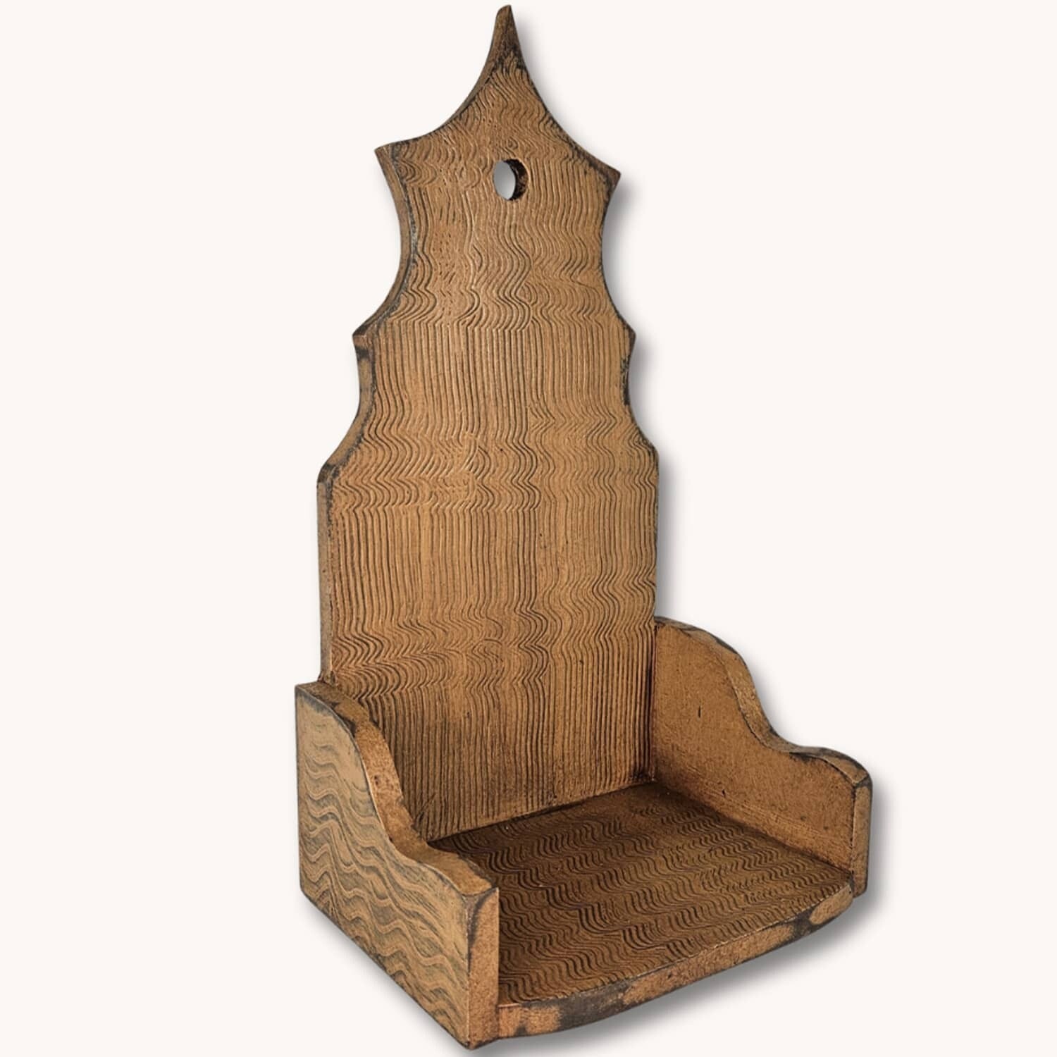 Primitive Wall Sconce stained in Mustard over Black and finished in a combed design. Made of solid wood in Pennsylvania, USA.