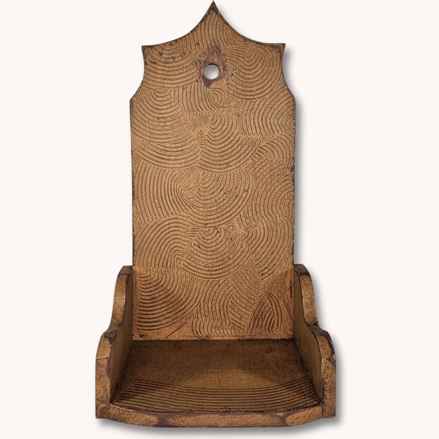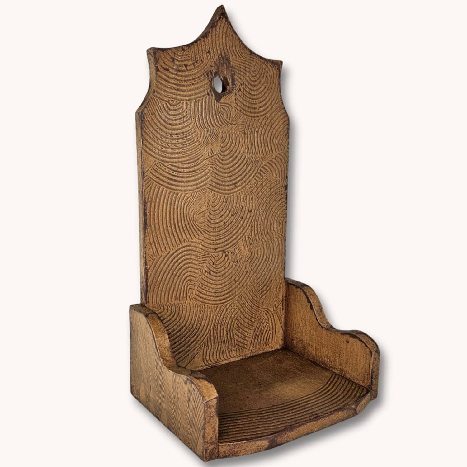 Primitive Wall Sconce stained in Mustard over Red and finished in a combed design. Made of solid wood in Pennsylvania, USA.
