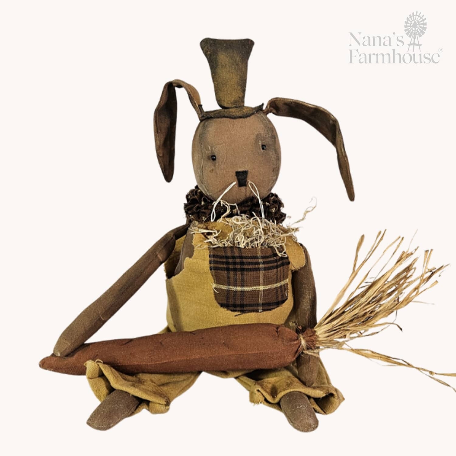 Features of the Walter Sitting Bunny Doll Holding Carrot On Lap: