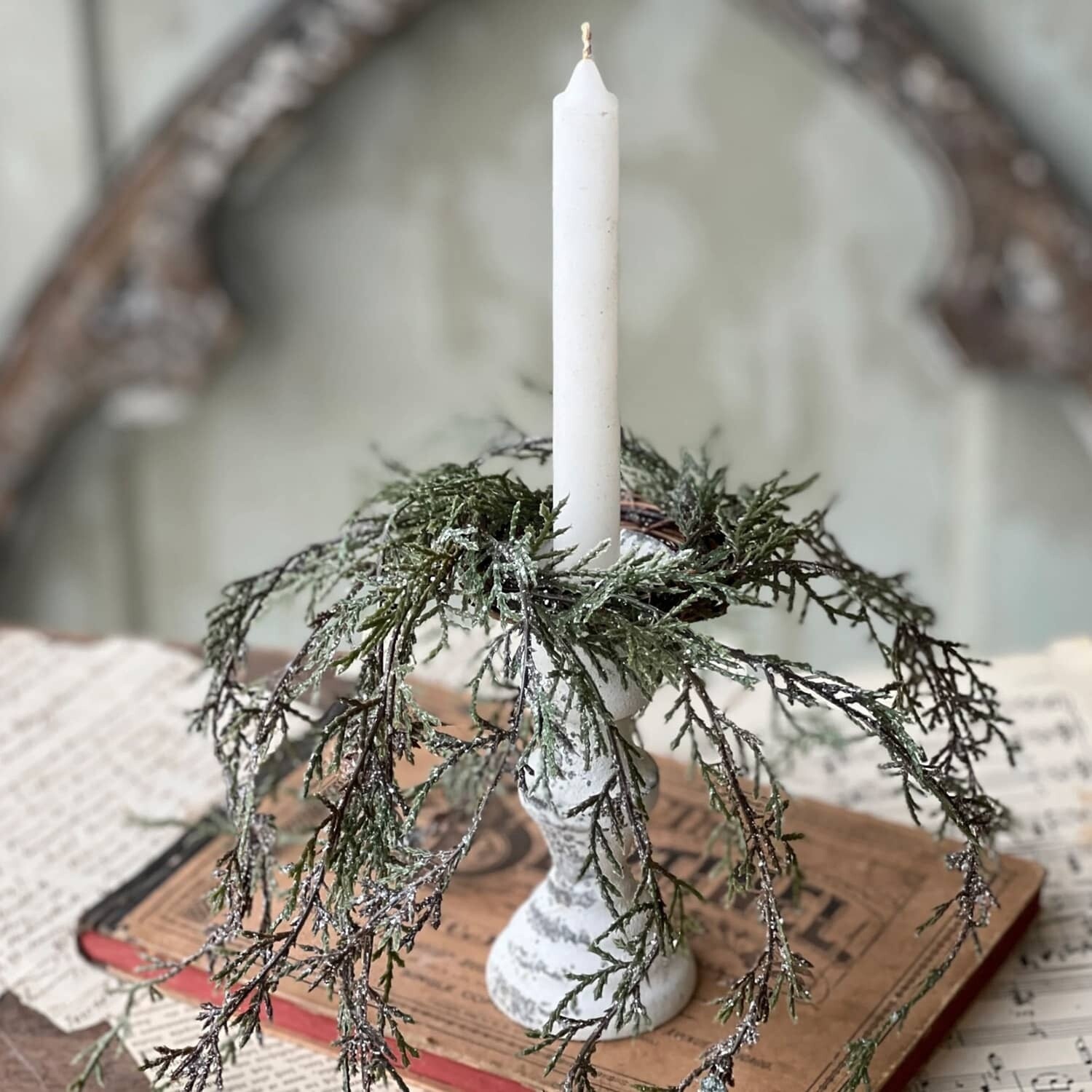Features of Weeping Cedar Candle Ring-Snow: