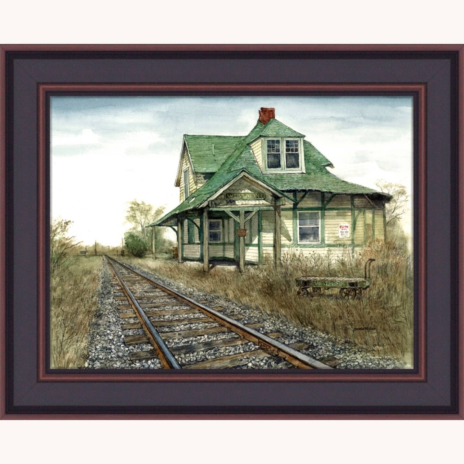 The Westmont Station Print captures an old train station that may evoke memories of one in your past. The tracks brought people, goods and hope to small towns across America! Sold in a Black & Walnut frame, 16" x 12".
