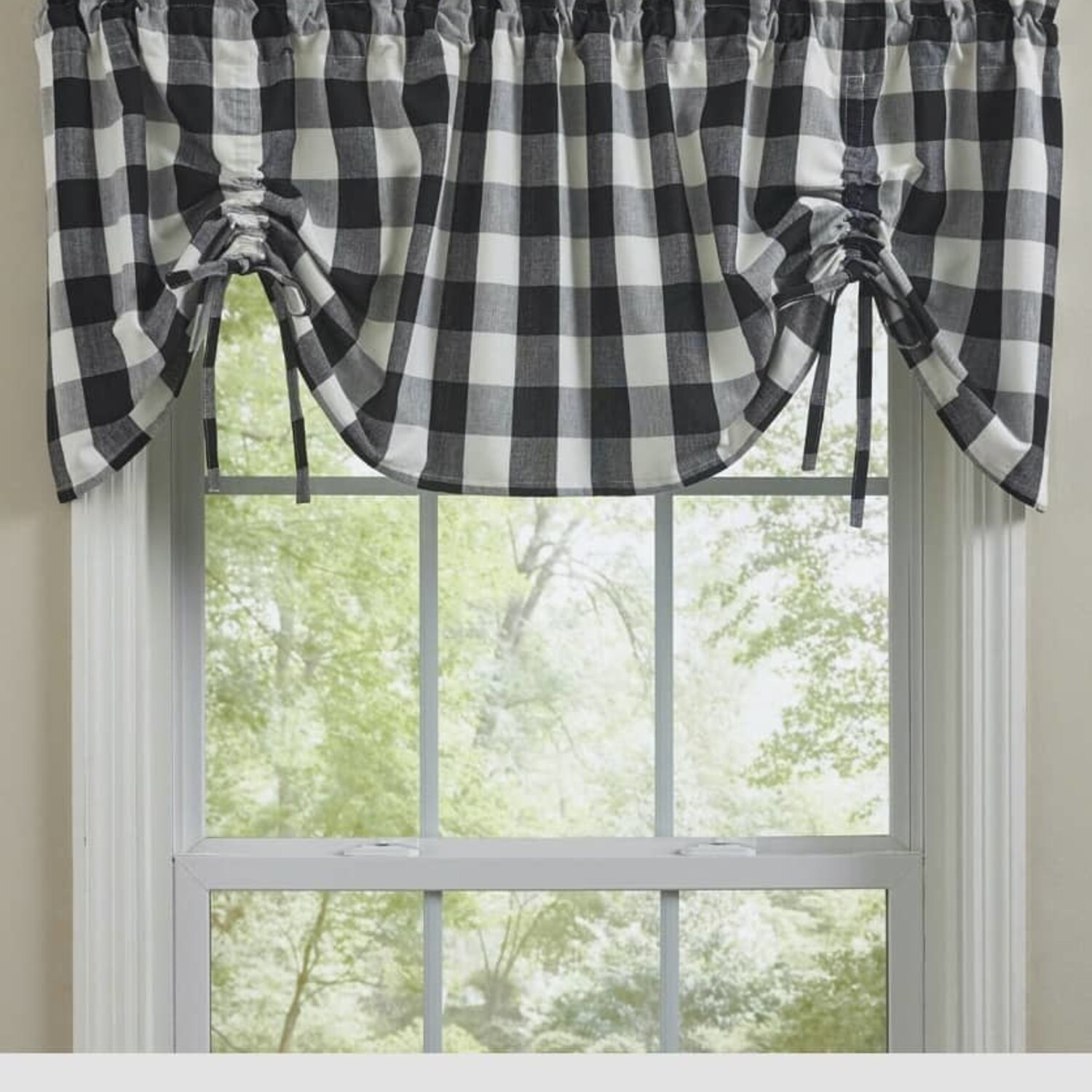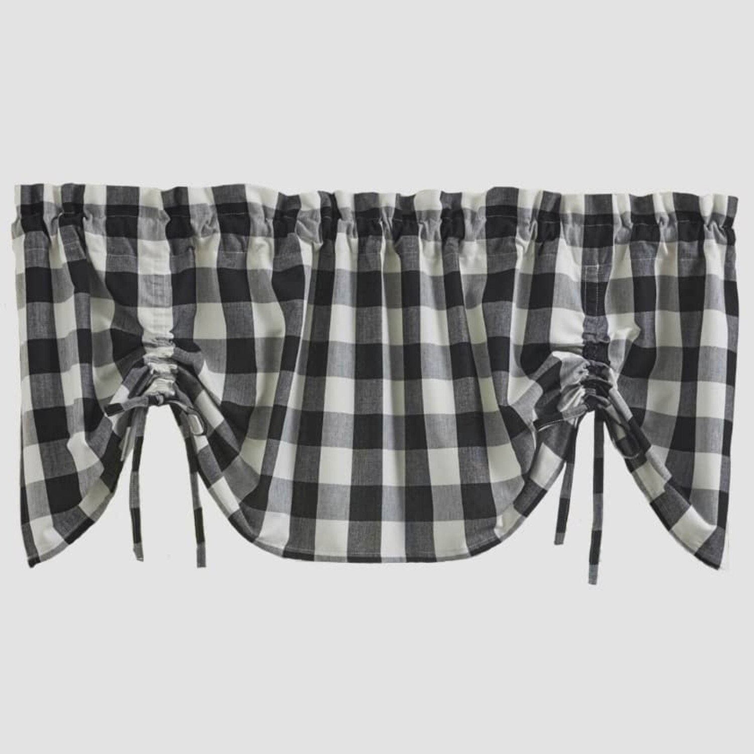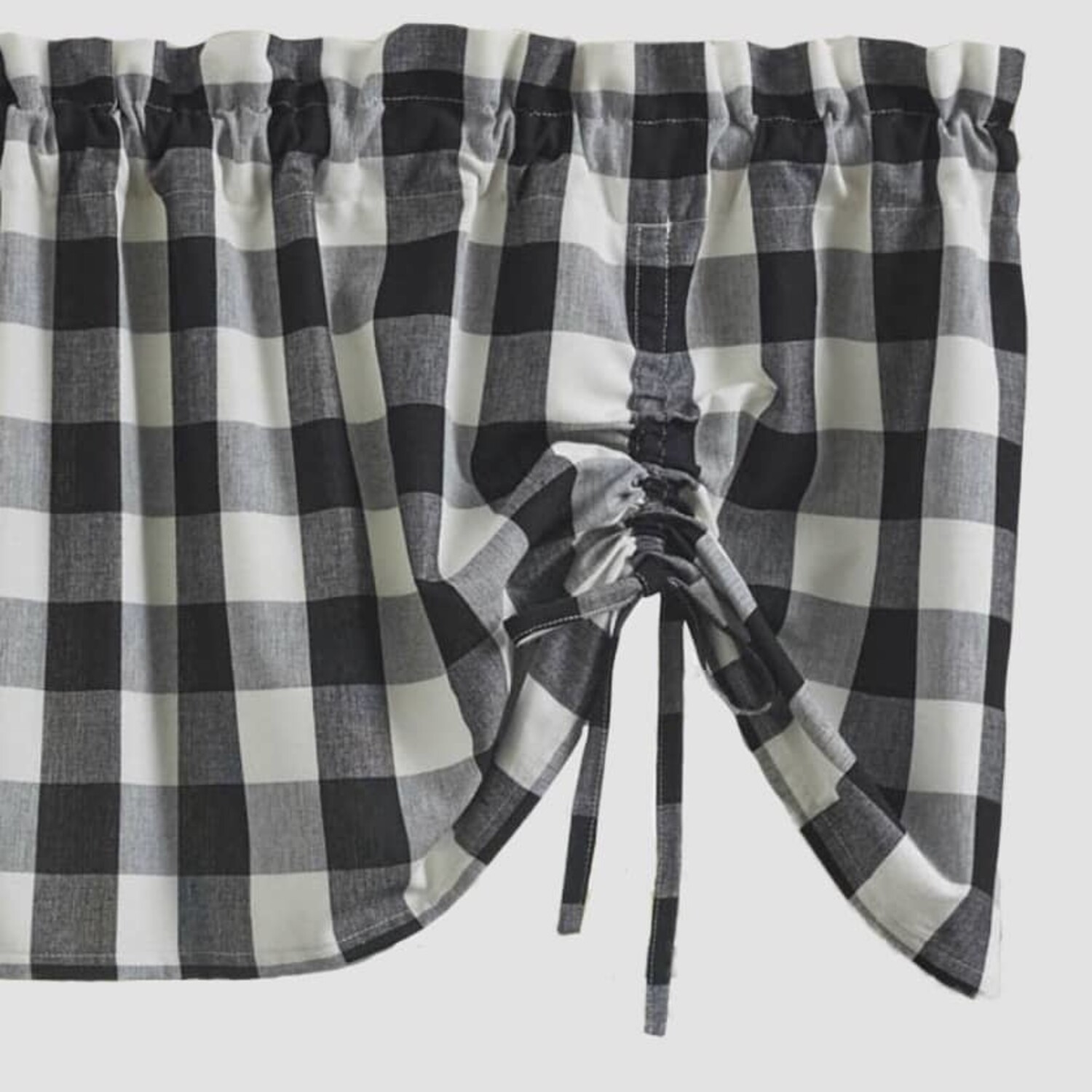 The Wicklow Check Black & Cream Lined Farmhouse Valance - 60x20 features: