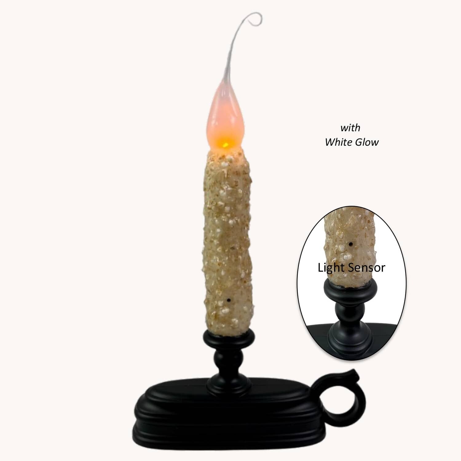 - Features Light Sensor. Candle comes on at dusk and turns off in morning