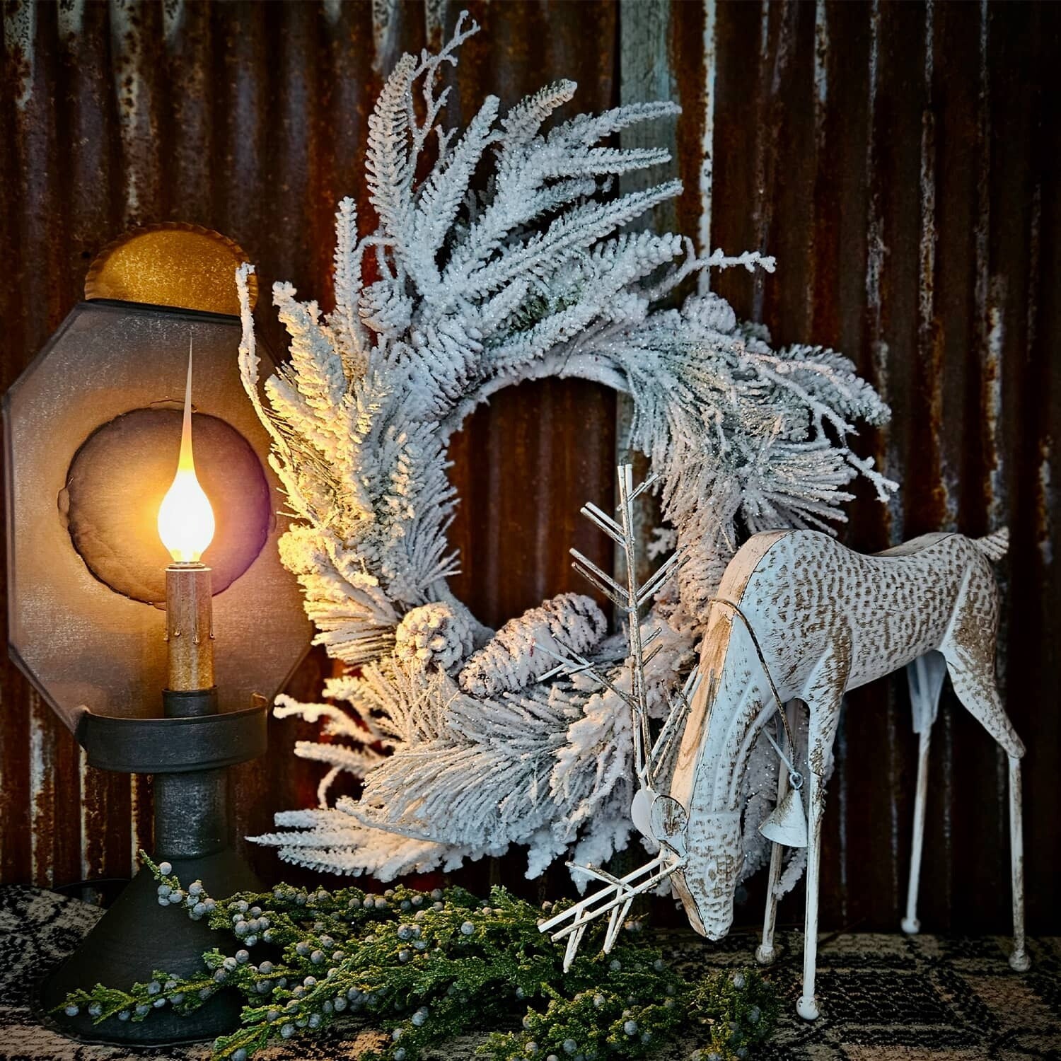 Add a little sparkle to your holiday decor with the Winter Gleam Candle Ring. Petite hops frosted with fine silver glitter add a bit of shine.
