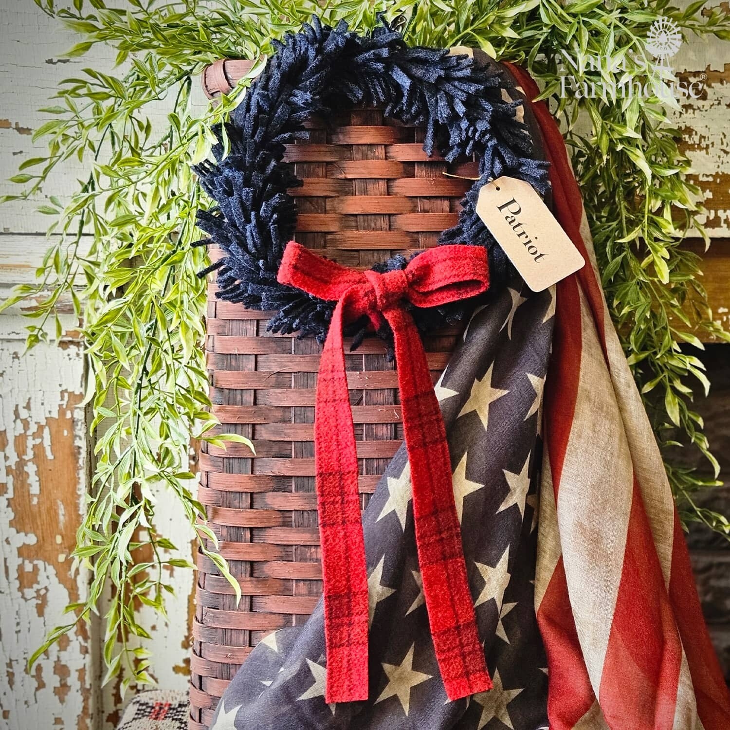 Features of the Navy Wool Felt Wreath with Red Velvet Bow: