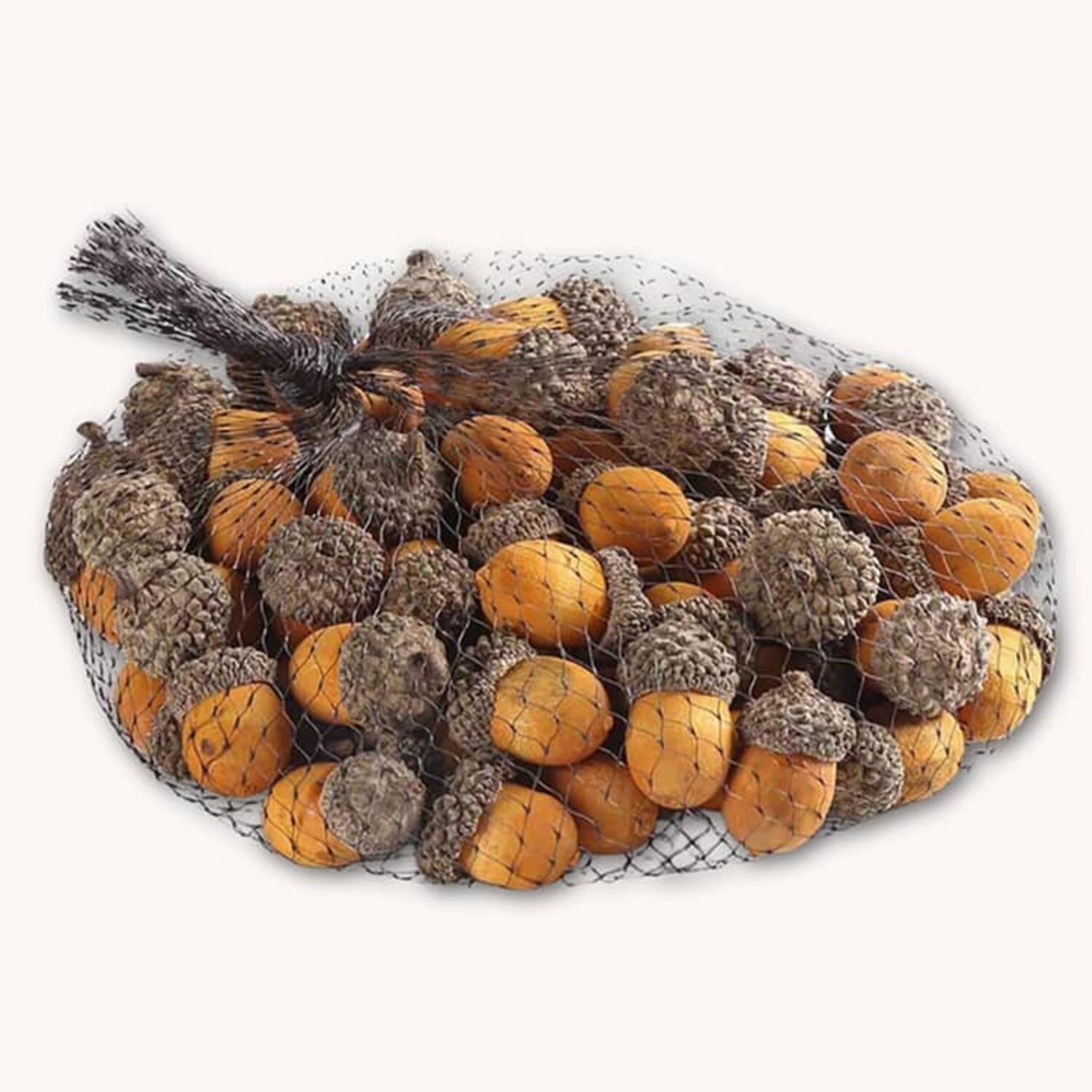 Add color and interest to your seasonal bowl or jar with this 75 count bag of acorns.